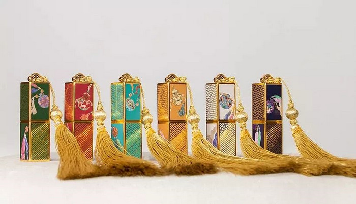 口红管旋转时,荷包纹与万字纹可自由搭配。