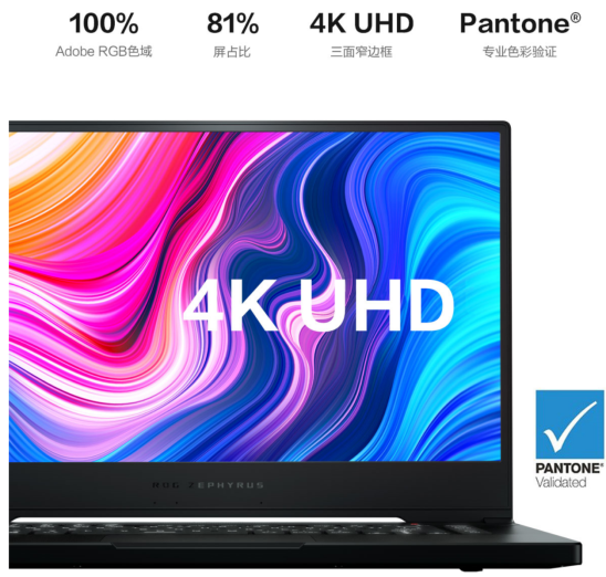 对于设计师来说,一块顶级素质的屏幕,对于深度设计和作品打磨是极其重要的。而ROG幻15所搭载的这块屏幕,从各个方面来说都可以满足顶级设计师的需求。其使用了三面窄边框的设计,宽度低至6.2毫米,屏占比高达81%,视觉观感极佳。屏幕分辨率更是高达4K UHD,同时色彩精度的平均△E<1,最大△E<1.5,还拥有100% Adobe色域,相比于100%sRGBS色域,将带给设计师们真实的、更广的色彩空间,图像处理和内容编辑都更加自由。此外这块15.6英寸的显示屏还通过了专业的Pantone色彩认证,在专业权威国际机构的认证和色彩调校下,让ROG幻15的这块显示屏的色彩表现更进一步,通过一系列的屏幕优化技术,设计师们的创作体验必然会大幅上升。